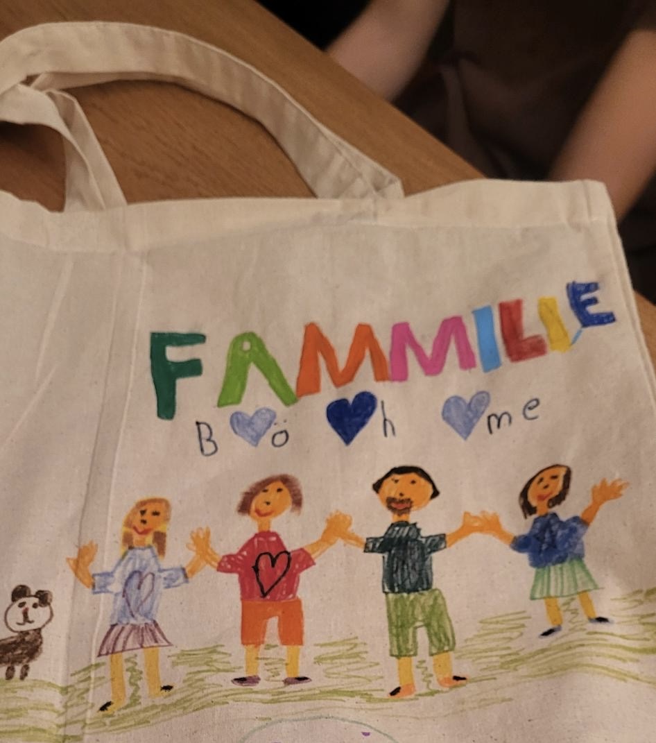 Der auf dem Bild gezeigte Erinnerungsbeutel wurde von einem Kind aus der Kunterbuntgruppe gestaltet. In ihm können zukünftig persönliche Erinnerungen, Gedanken und Gefühle aufbewahrt und die fortbestehende Verbindung zur verstorbenen Person auf individuelle Weise spürbar werden.